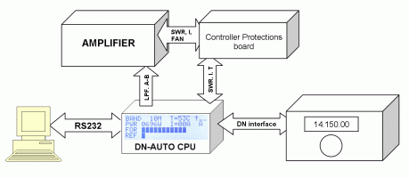 Information about the engaged band comes to the DN-AUTO CPU from the transceiver or computer. The microprocessor unit the DN-AUTO CPU processes the incoming information and turns on the band in the LPF Unit of the amplifier.